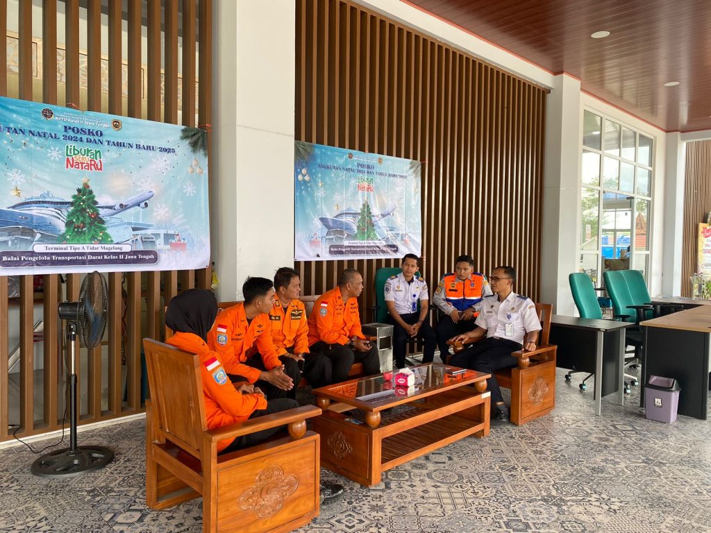 Hari pertama Posko Natal dan Tahun Baru 2024, Basarnas Borobudur melakukan kunjungan ke Terminal Tidar, Kota Magelang, untuk memperkuat koordinasi dan sinergi dalam rangka mengamankan arus mudik dan liburan akhir tahun. Kunjungan ini menjadi momen silaturahmi yang hangat antara Basarnas dengan pihak terminal serta instansi terkait, untuk saling bertukar informasi dan memperkuat jaringan komunikasi demi kelancaran dan keselamatan para penumpang.
